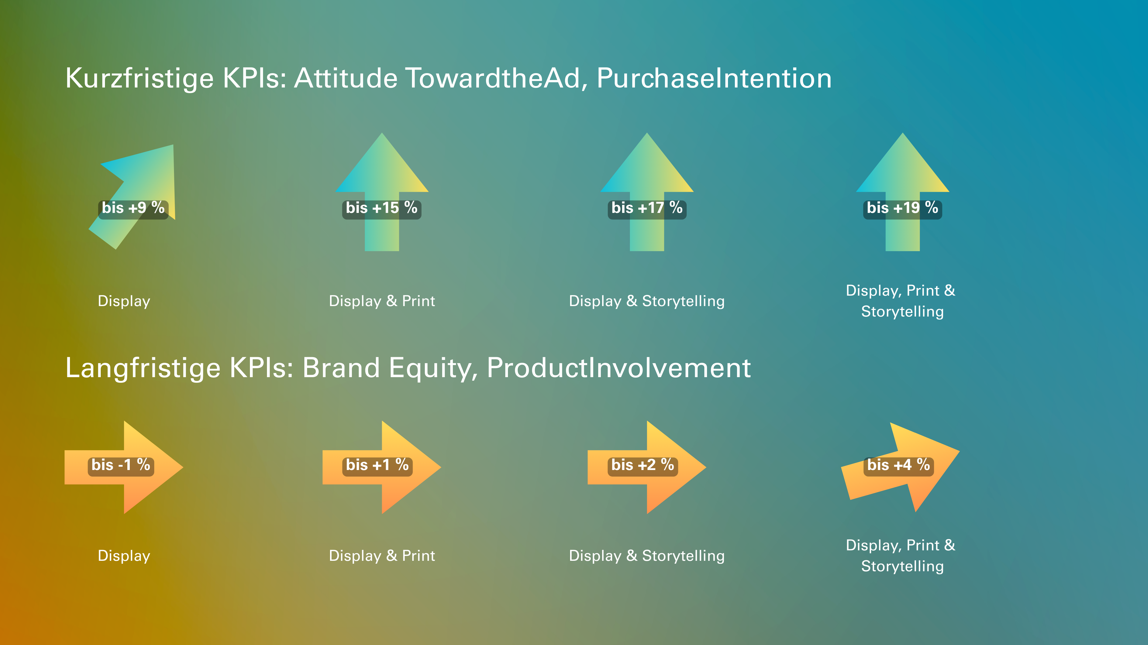 Durch diesen Wirkungsverlauf erzielen Kampagnen in reputationsstarken Qualitätsumfeldern konsistent bessere Werte. Das betrifft sowohl spontane Reaktionen wie Werbemittelgefallen oder Kaufabsicht als auch nachhaltige Markenmetriken. Besonders ausgeprägt wird dieser Effekt, wenn verschiedene Maßnahmen miteinander verzahnt werden. Die Kombination aus Display-Werbung, Print und digitalem Storytelling sorgt dafür, dass sich die jeweiligen Kontaktpunkte wechselseitig stützen und die Gesamtwirkung deutlich erhöht wird.